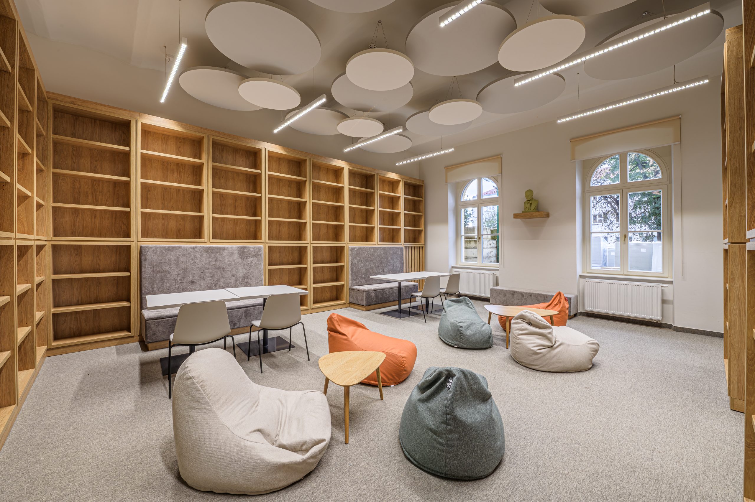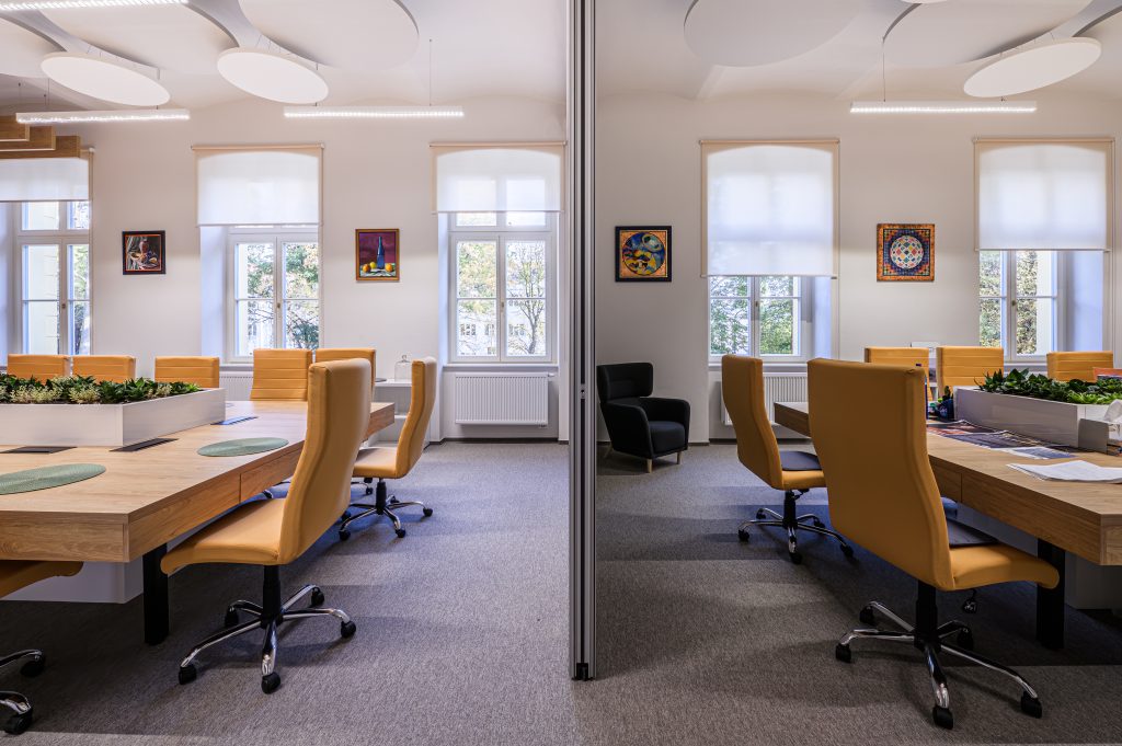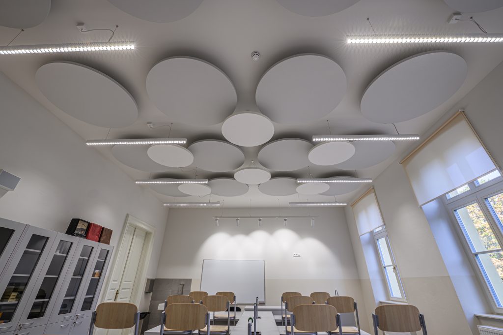 100-ročné trámy a klince pod strechou gymnázia z roku 1893 sa museli ponechať za účelom záchrany historického krovu, vo výsledku museli akcentovať. Ručne vyrezávané dvere a klenuté okná majstrov tesárov, dokonalé vo svojej nedokonalosti, mali dostať iba obnovujúci náter… Naopak, neželaná vlhkosť v spodných priestoroch musela preč.